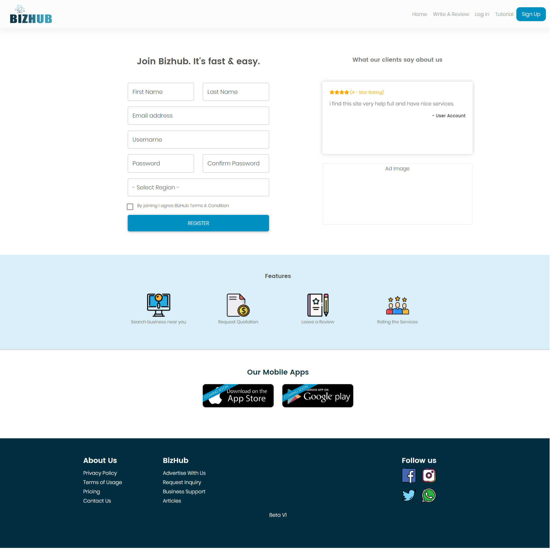 Click on Register your business button